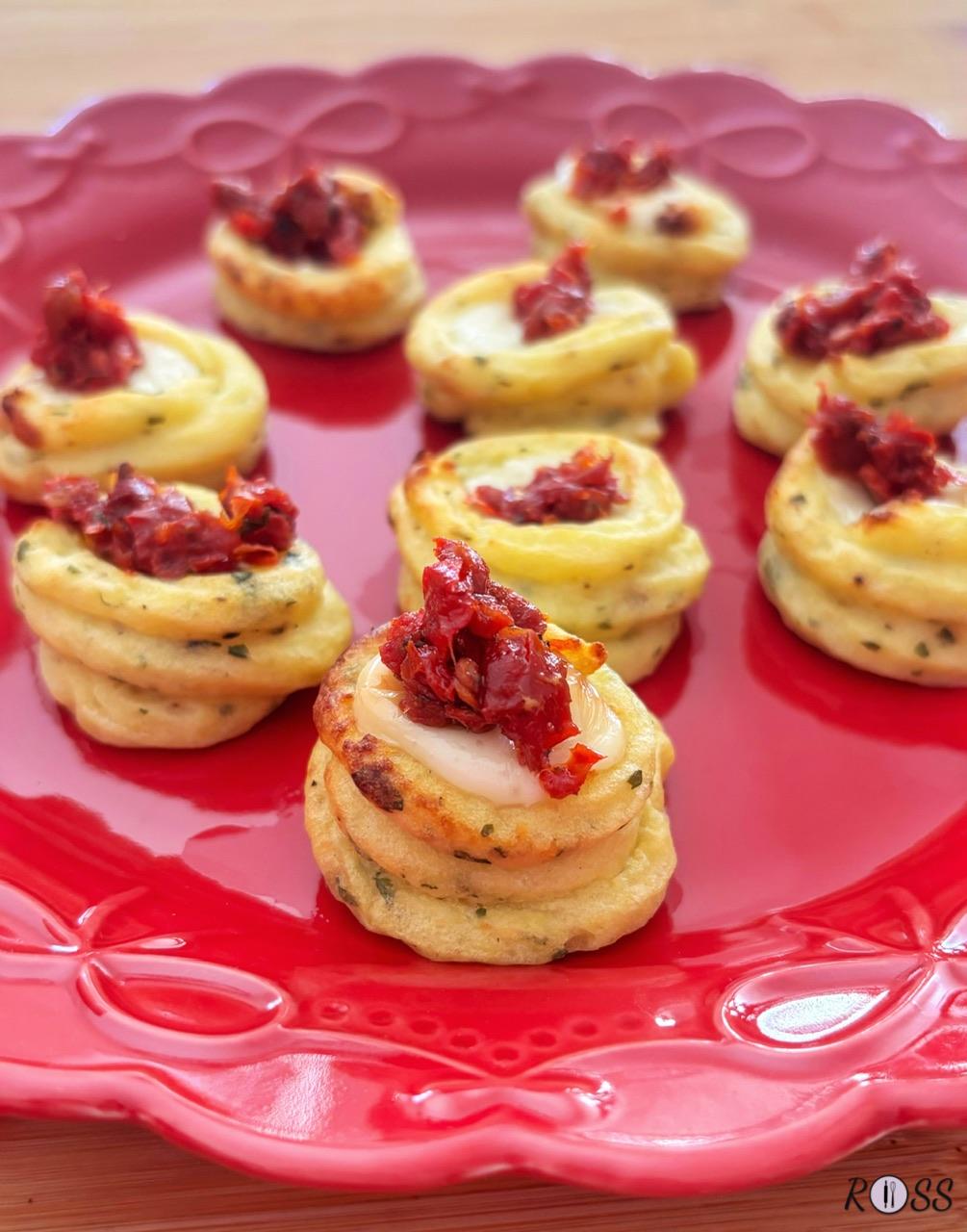 - Sciacciate le patate, precedentemente lessate, in una ciotola insieme al burro e amalgamate con una forchetta fino a ottenere una purea liscia. Aggiungete pepe, sale, formaggio grattugiato, prezzemolo e uovo. Mescolate il tutto fino a ottenere un composto omogeneo. Rivestite una teglia con carta da forno e trasferite il composto in una tasca da pasticcere. Formate dei piccoli cestini ricavando doppi cerchi di pasta e cuoceteli in forno preriscaldato a 180°C per circa 15 minuti. Togliete dal forno, farcite con il formaggio e infornate nuovamente per 7 minuti. Sfornate ed aggiungete su ogni cestino di patate il capuliato. Adesso sono pronti per essere serviti